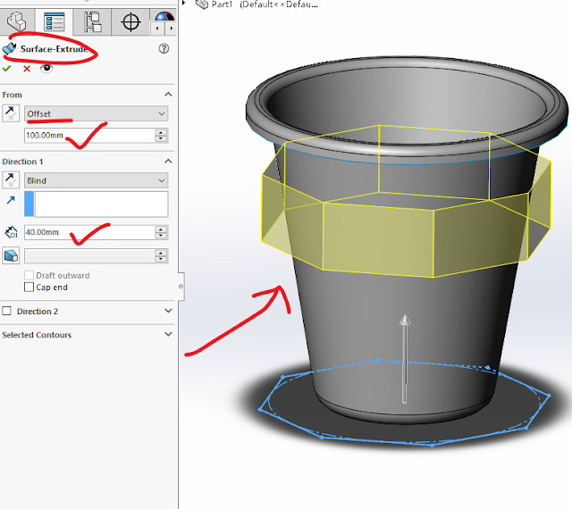 Step #5.Surface extrusion, offset 100, extrusion height 40